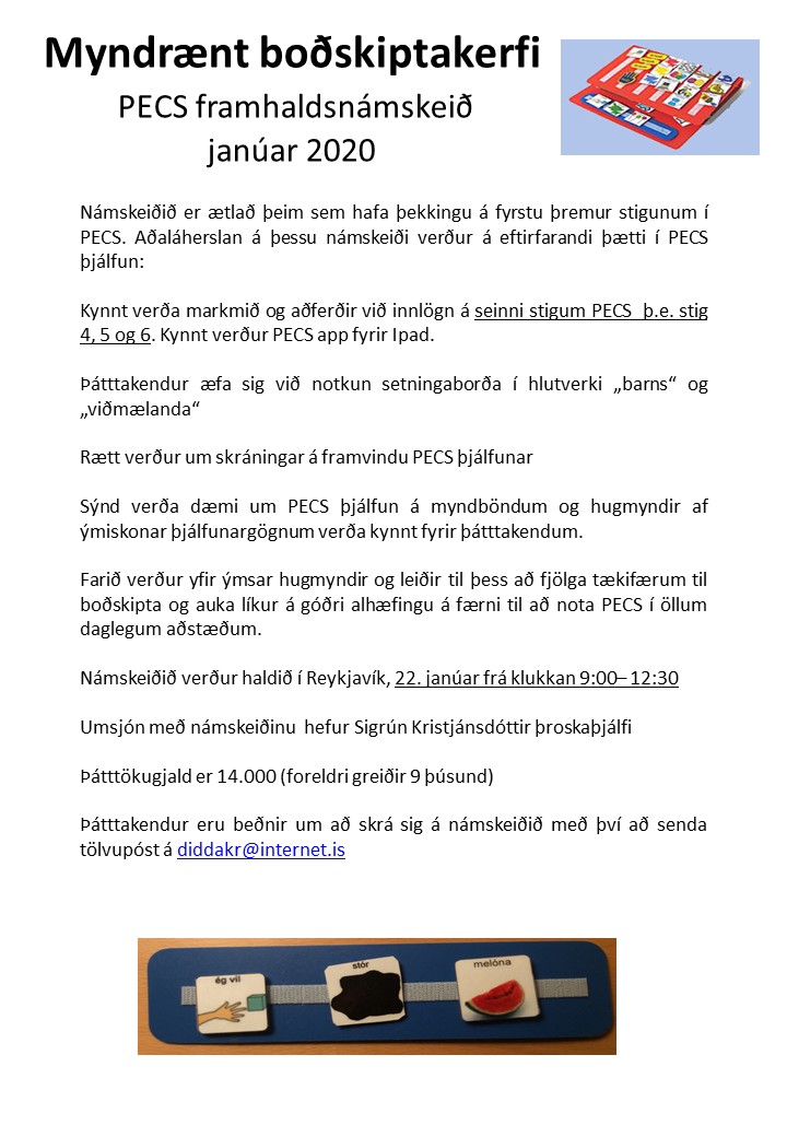 Myndrænt boðskiptakerfi - PECS framhaldsnámskeið í janúar 2020